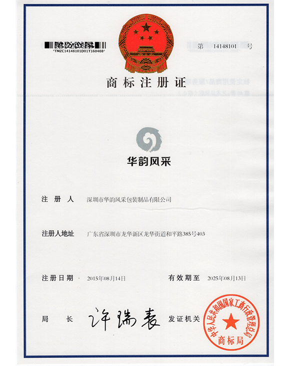 2013年,公司擴(kuò)充至2000平方,成為一般納稅人,搬遷至布吉秀峰工業(yè)城,公司更名為深圳市華韻風(fēng)采包裝制品有限公司,簽約民生銀行,成為年度印刷服務(wù)商。